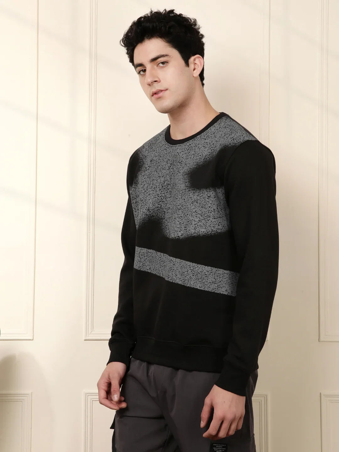 Sleek, snug, and always in style – this black polycotton sweatshirt is your wardrobe MVP for staying warm without losing your edge.