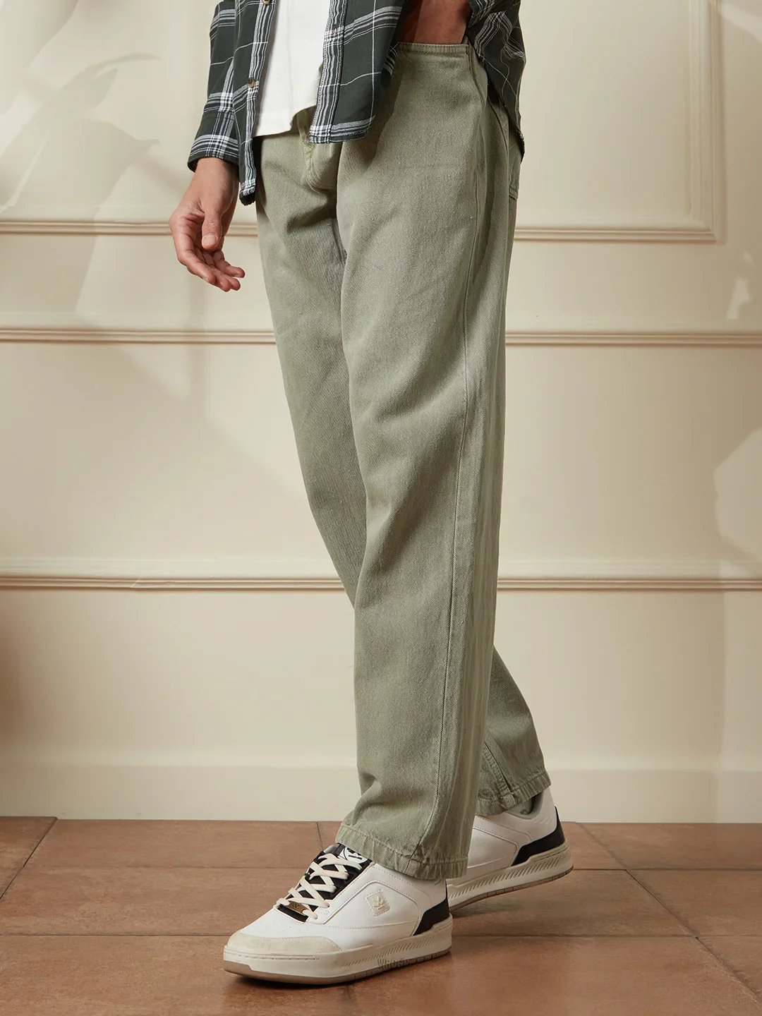 Anti-fit and anti-boring, these green denim jeans are made for guys who like to step off the beaten path. A bold twist on everyday denim.